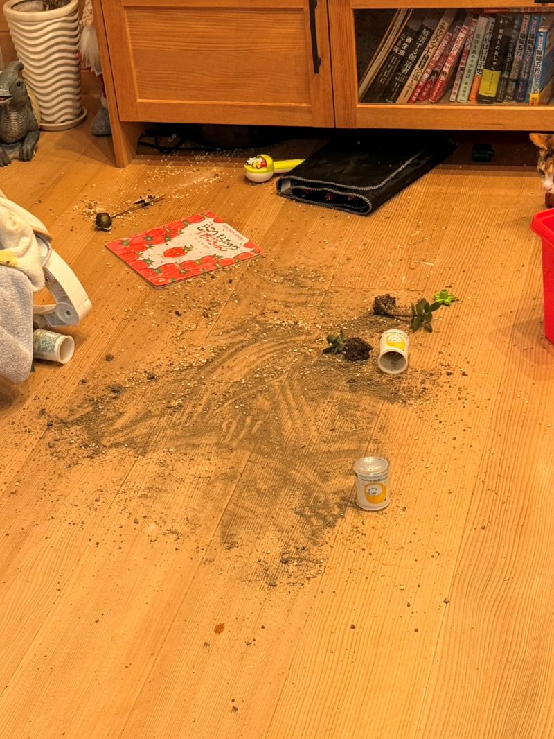 フローリングにこぼすと、慌ててこぼしたものをふき取ろうとします。こぼした方は怒られますし、片付ける方は怒ることになります。